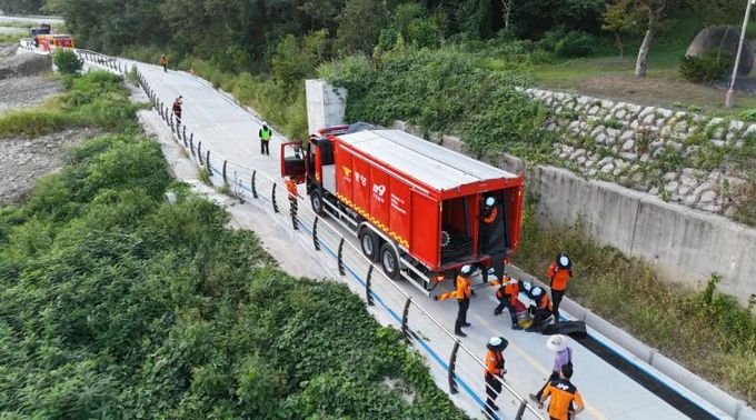[경남도민뉴스=류종길 기자] 강릉시가 최악의 가뭄 위기 상황 속에서 원수 확보를 위해 총력을 기울이는 가운데, 9월 12일 중앙119구조본부에서 대용량포 방사시스템을 지원하여 일 1만 톤 이상의 원수를 홍제정수장으로 송수할 수 있을 것으로 기대된다.