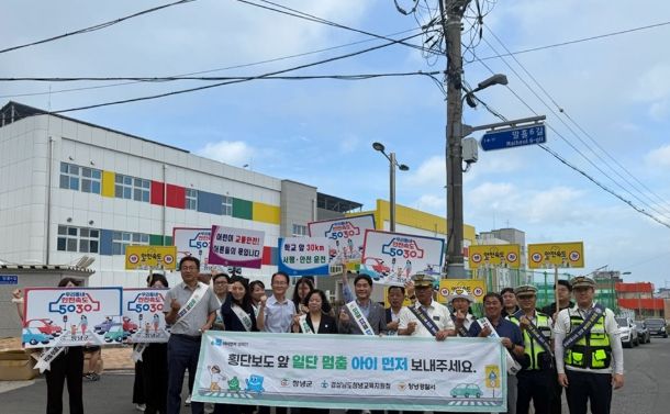 행사에는 창녕군 건설교통과, 창녕경찰서, 창녕교육지원청 등 관계기관 30여 명이 참여했으며, “일단 멈춤, 아이 먼저 보내주세요”라는 슬로건이 적힌 피켓을 들고 홍보물품을 배부하며 교통안전 메시지를 전했다.