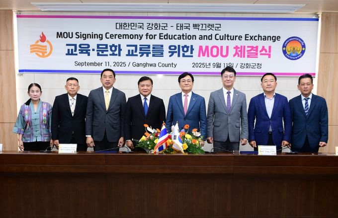 [경남도민뉴스=김용욱 기자] 강화군은 지난 11일 태국 논타부리주 빡끄렛군(시장 위차이 반다삭)과 교육·문화 교류 협력을 위한 양해각서(MOU)를 체결했다.