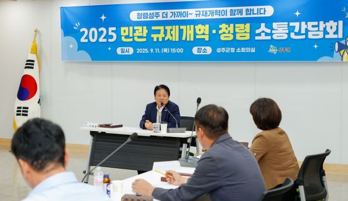 [경남도민뉴스=최민숙 기자] 성주군은 지난 11일, 관내 6개 경제 관련 협의회 회장단과 “2025 민-관 규제개혁·청렴 소통간담회”를 개최하여 규제개혁을 위한 현장의 목소리를 들었다.