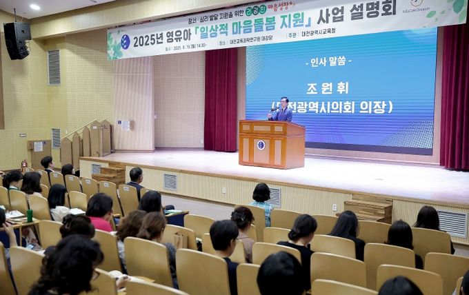 [경남도민뉴스=도문호 기자] 대전시의회 조원휘 의장은 15일 대전교육과학연구원에서 개최된 2025년 영유아 일상적 마음돌봄 지원사업 설명회에 참석해 보육 일선에서 최선을 다하는 보육인들께 감사를 표하고, 아이들과 보육인들 모두 행복한 보육환경 조성을 약속했다.