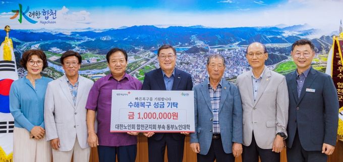 합천군은 지난 7월 기록적인 집중 호우로 인해 주택과 농경지 침수 등 큰 피해를 입은 바 있다. 이에 동부노인대학장을 비롯한 학생들은 피해 복구에 조금이나마 보탬이 되고자 성금을 자발적으로 마련한 것이다.