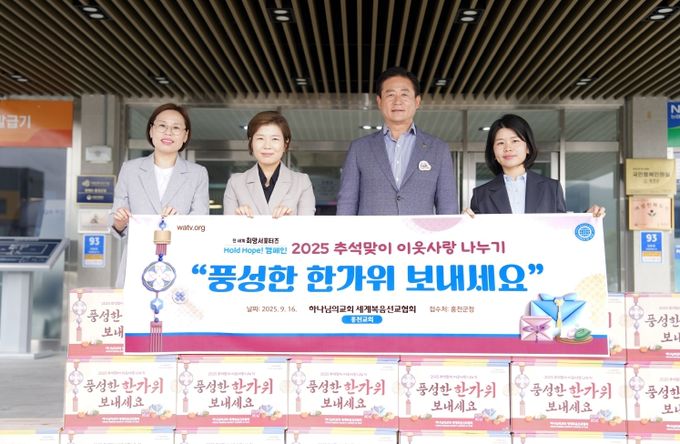 [경남도민뉴스=표재민 기자] 하나님의교회세계복음선교협회(총회장 김주철)는 추석 명절을 맞아 9월 16일 홍천군청에 방문하여 2025 추석맞이 이웃사랑 나누기 식료품 20세트(총 80~100만 원 상당)를 전달했다.