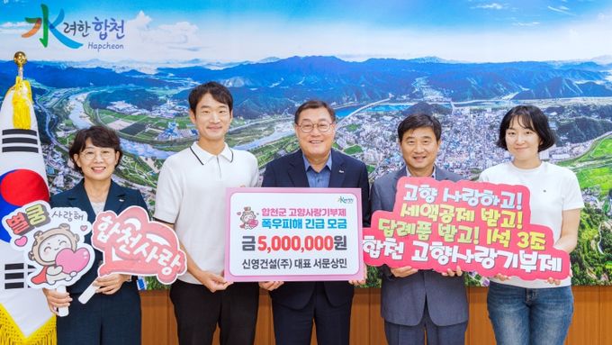 서문상민 대표가 이끄는 신영건설㈜은 합천군 삼가면에 위치한 토목시설물 건설 전문 업체로, 지역 기반 시설 확충과 발전에 기여해왔다. 이번 기부는 지난 7월 집중호우로 피해를 입은 지역의 복구와 군민들의 생활 안정 지원을 위해 마련됐다.