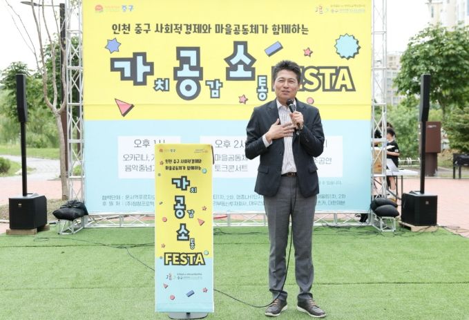 행사 현장에는 김정헌 중구청장도 동참해 관계자들을 격려하고, 주민들을 만나 사회적경제에 관해 소통하는 시간을 가졌다.