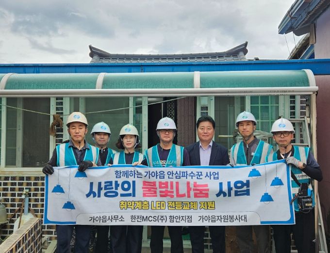 ‘사랑의 불빛나눔’은 한전엠씨에스(주) 함안지점과 가야읍 지역사회보장협의체가 함께 추진하는 가야읍 특화사업으로, 이번 4차 작업에는 한전엠씨에스(주) 의령지점도 동참해 힘을 보탰다.