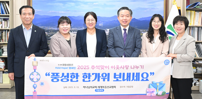 구인모 거창군수는 “꾸준히 나눔을 이어가는 BNK경남은행 사랑나눔재단과 지역사회와 함께하는 하나님의교회 세계복음선교협회에 깊이 감사드린다”며 “기탁된 물품은 꼭 필요한 분들께 신속히 전달해 모두가 따뜻한 명절을 보낼 수 있도록 최선을 다하겠다”고 말했다.