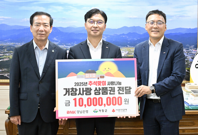 BNK경남은행 사랑나눔재단은 소외계층 지원을 위한 사회공헌활동의 일환으로 거창사랑상품권 1만 원권 1,000매를 기탁했으며, 이는 세대별 5만 원씩 총 200세대에 전달될 예정이다. 이번에 지원되는 거창사랑상품권은 관내 전통시장과 지역 상점에서 현금처럼 사용할 수 있어, 명절을 준비하는 취약계층 가정의 생활에 실질적인 도움이 되는 동시에 지역경제 활성화에도 기여할 것으로 기대된다.