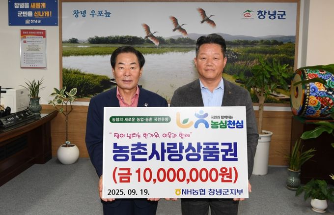 [경남도민뉴스=김병현 기자] 창녕군은 지난 19일 NH농협 창녕군지부로부터 1천만 원 상당의 농촌사랑상품권을 기탁받았다고 밝혔다.