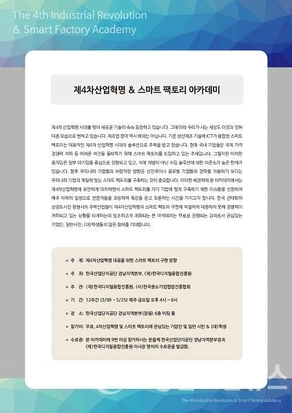참가비는 전액 무료이며, 스마트팩토리 구현에 관심 있는 기업인 및 일반시민, 대학생 등 누구나 신청할 수 있다.