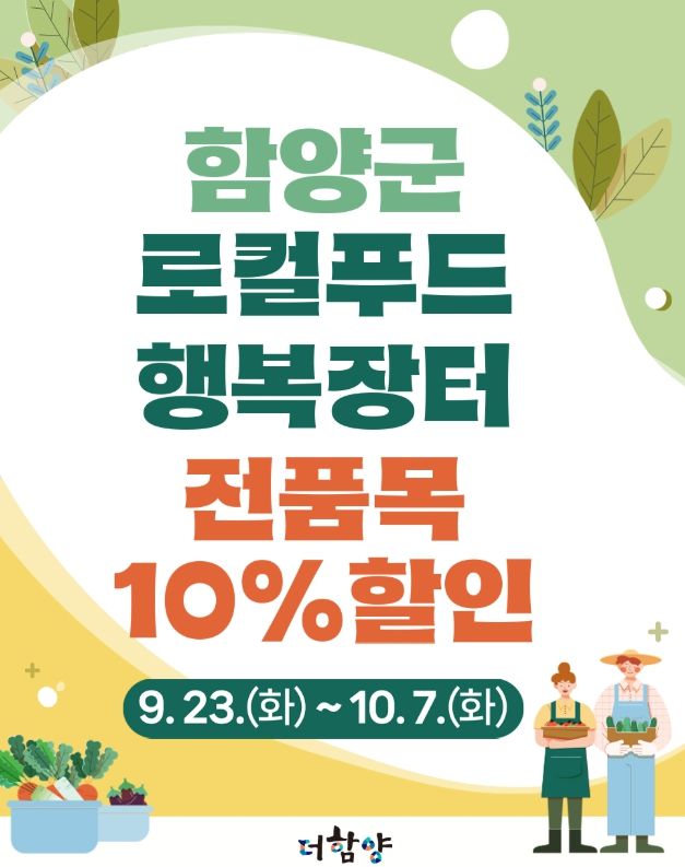 [경남도민뉴스=장광동 기자] 함양군은 9월 24일부터 10월 8일까지 2주간 로컬푸드 행복장터에서 전품목 10% 할인 행사를 실시한다고 밝혔다.