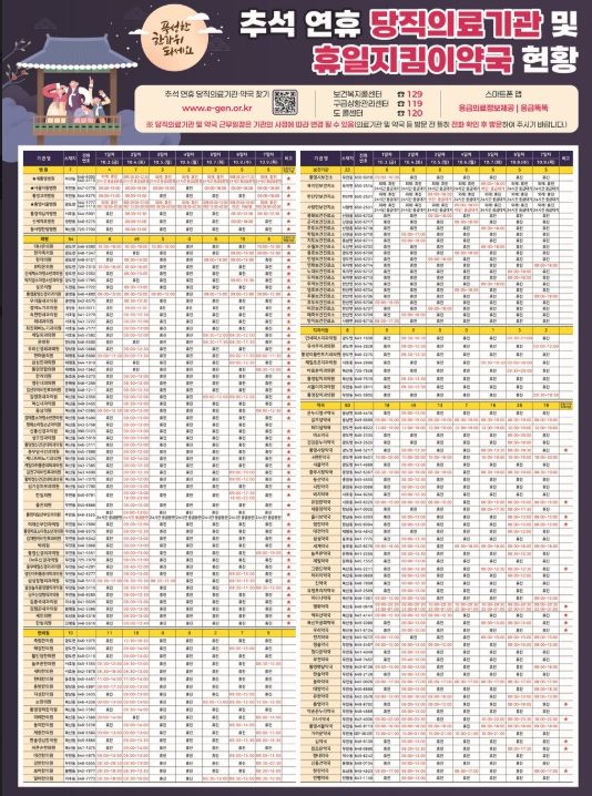 또한 연휴기간 내 보건(지)소 및 보건진료소는 당직진료일 지정, 비상진료체계를 유지하기 위한 24시간 응급진료상황실 운영을 통해 시민들의 응급진료에 공백이 발생하지 않도록 지원할 계획이다.