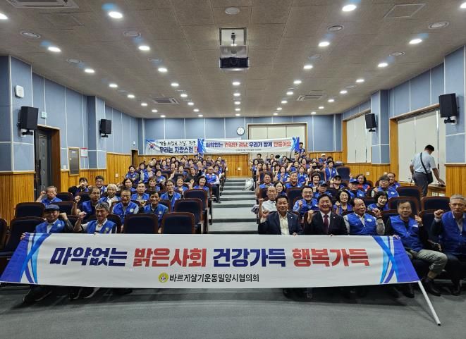 [경남도민뉴스=나희준 기자] 바르게살기운동 밀양시협의회는 밀양시여성회관에서 임원, 읍·면·동 위원장과 위원 등 120여 명이 참석한 가운데 도덕성 회복 강연회 및 마약 퇴치 캠페인을 개최했다고 26일 밝혔다.