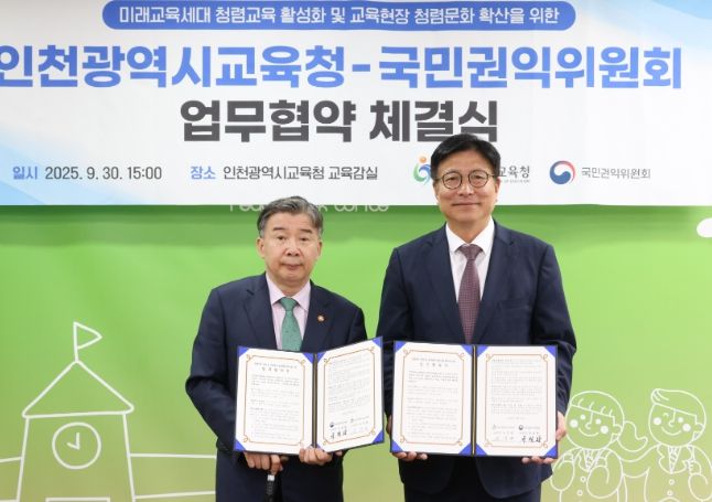 [경남도민뉴스=김용욱 기자] 인천광역시교육청은 9월 30일 국민권익위원회와 청렴한 미래인재 양성과 교육 현장의 청렴 문화 확산을 위한 업무협약을 체결했다.