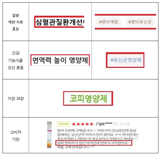 아울러, 건강기능식품 등을 온라인에서 구매하려는 경우 건강기능식품 도안과 ‘~에 도움을 줄 수 있음’과 같은 기능성 내용을 꼼꼼히 확인하고, 검증되지 않은 의학적 효능·효과 등을 내세우는 부당광고에 현혹되지 않도록 주의해야 한다.