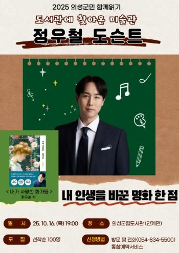 김주수 의성군수는 “정우철 도슨트의 명화 이야기를 통해 군민들이 예술을 보다 친근하게 느끼고, 일상 속에서 위로와 영감을 얻는 시간이 되길 바란다”며 “앞으로도 다양한 문화예술 강연을 통해 군민의 문화 향유 기회를 확대해 나가겠다”고 말했다.