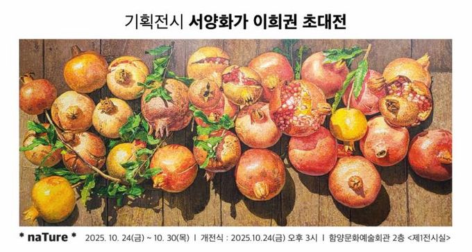 [경남도민뉴스=장광동 기자] 함양군은 오는 10월 24일부터 30일까지 함양문화예술회관 제1전시실에서 2025년 기획 전시로 서양화가 이희권 작가를 초대해 ‘naTure(네이처)’를 개최한다.