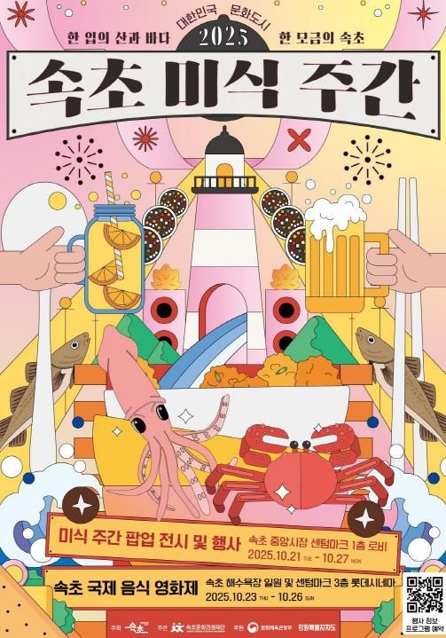 10월 21일부터 27일까지 진행되는 ‘2025 속초 미식주간’은 ‘맛으로 잇고, 도시를 깨우다(EAT, CONNECT, RE:VIVE SOKCHO)’를 주제로 속초의 음식문화와 관광, 예술을 융합한 ‘미식도시 브랜드 프로젝트’다.