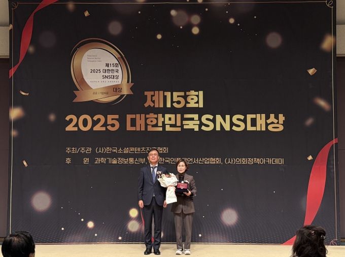 ‘대한민국 SNS 대상’은 (사)한국소셜콘텐츠진흥협회가 주최하고 과학기술정보통신부 등 관계 기관이 후원하는 행사로, 전국 지방자치단체와 공공기관의 SNS 운영 성과를 종합적으로 평가해 시상한다.