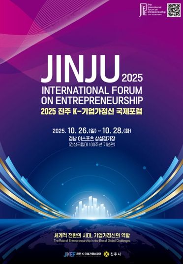 진주시와 진주 K-기업가정신재단은 오는 10월 26일부터 28일까지 경상국립대학교 100주년 기념관(경남 이스포츠경기장) 등 진주시 일원에서 『2025 진주 K-기업가정신 국제포럼』을 개최한다고 밝혔다.