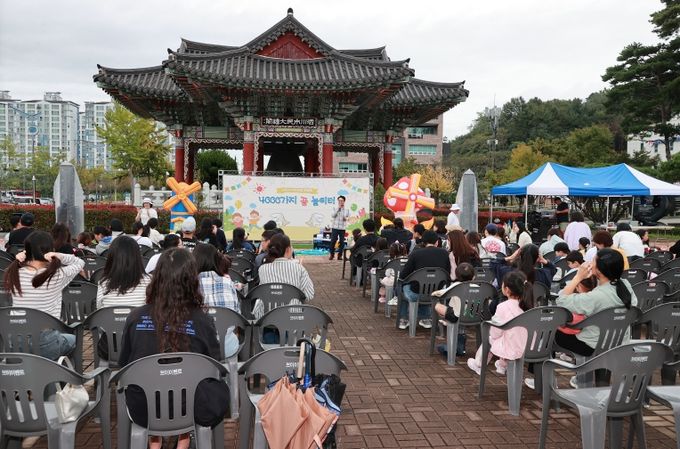 이날 사천시청 노을광장은 어린이들의 상상력과 꿈이 가득한 놀이터로 변신, 관내 60개소 어린이집 영유아와 보호자, 지역주민 등 3천여 명이 함께해 축제의 장이 펼쳐졌다.