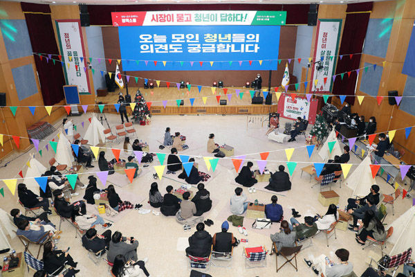 먼저 ‘청년들에게 묻습니다’의 주제로 ‘청년 면접정장 무료 대여, 청년 월세 및 전세자금 대출 이자 지원, 누비자 교통비 지원 등 가장 기억에 남는 창원시 청년정책은?’, ‘내가 만약 시장이라면 가장 먼저 추진하고 싶은 청년정책은?’, ‘청년정책 실현을 위해 가장 먼저 마련되어야 할 것은?’ 등 3가지 질문에 대해 현장투표하고 투표결과를 실시간으로 보면서 청년들의 생각을 구체적으로 들었다.