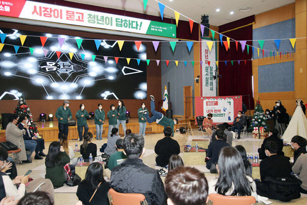‘내가 만약 시장이라면 어떤 선택을 할 것인가?’의 두 번째 주제로 청년들이 시장의 고민을 상담하는 방식으로 오픈채팅방과 현장에서 자유분방하게 청년들의 의견을 들었다. 창원의 청년들로 구성된 댄스팀 몸부림의 공연도 열띤 호응을 불러일으켰다.