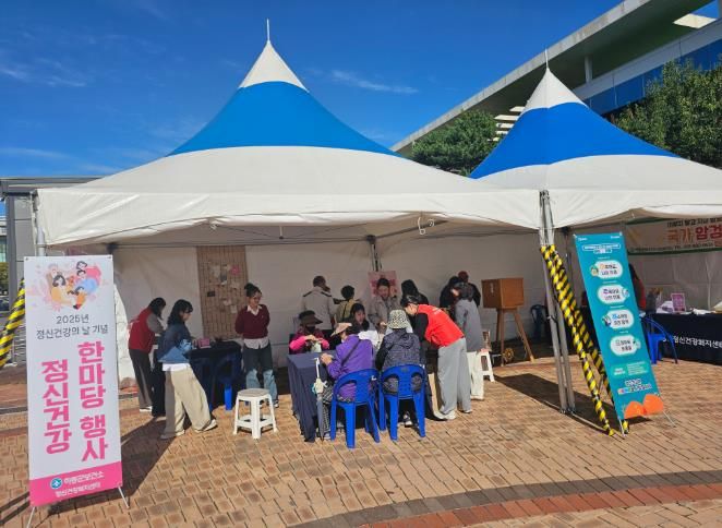[경남도민뉴스=김태수 기자] 하동군 정신건강복지센터가 하동군보건소 앞 광장에서 “2025년 정신건강 한마당 행사”를 진행 중이다.
