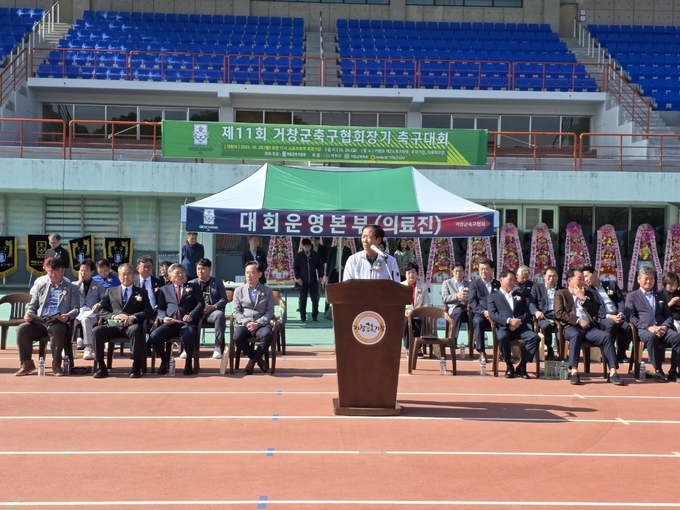 구인모 군수는 환영사에서 “이번 대회의 성공적인 개최를 위해 함께 해주신 거창군 축구 동호인 선수단과 먼 길을 마다하지 않고 찾아주신 산청과 함양군 축구 동호인 여러분께 감사와 환영의 뜻을 전한다”며, “대회가 끝날 때까지 부상 없이 경기를 잘 마무리하시고, 그동안 갈고닦은 실력을 마음껏 발휘해 멋진 경기를 선사해 주시길 바란다”고 말했다.