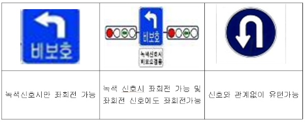 또한 작년 4월부터 보호/비보호 제도가 전국적으로 도입되어 운용되고 있는데 이는 기존의 비보호와 마찬가지로 녹색신호에도 좌회전할 수 있고 좌회전 신호에 따라서도 좌회전 할 수 있도록 한 곳이므로 맞은편에서 오는 차가 없을 때에는 녹색신호에, 맞은편에서 차량이 계속 오고 있을 때에는 좌회전 신호에 따라 좌회전하면 될 것이다.