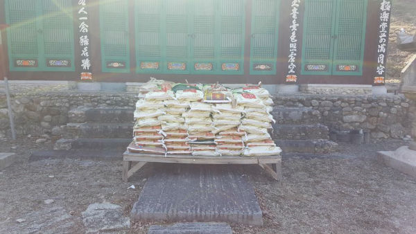 (산청/최광용 기자) = 대한불교 조계종 화림사(주지 혜종스님)는 지난 17일 신도들에게 기부받은 쌀 800kg(환가액 200만원 상당)을 산청군에 기탁했다.