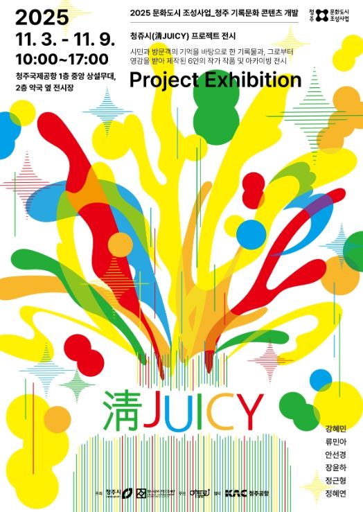 [경남도민뉴스=박만수 기자] 청주시와 청주시문화산업진흥재단은 오는 11월 3일부터 9일까지 청주국제공항에서 지역 예술인 작품 전시회인 ‘청쥬시(淸JUICY) 프로젝트’를 진행한다고 전했다.
