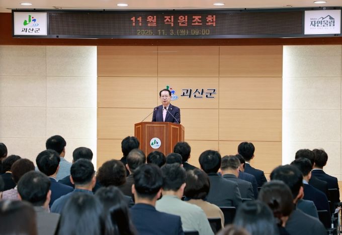 [경남도민뉴스=박만수 기자] 충북 괴산군은 3일 군청 대회의실에서 11월 직원조회를 열고, 올해 지역축제의 성과와 연말까지 중점 추진할 과제들을 공유했다.