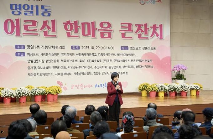 [경남도민뉴스=김완호 기자] 서울 강동구 명일1동은 지난 10월 29일 명성교회 샬롬아트홀에서 관내 어르신 250여 명을 모시고, ‘명일1동 어르신 한마음 큰잔치’를 성황리에 개최했다고 밝혔다.