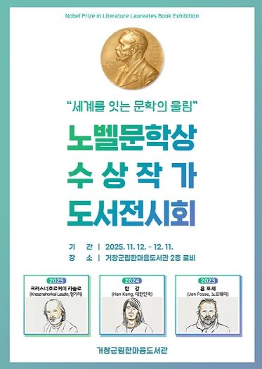 [경남도민뉴스=백형찬 기자] 거창군은 2025년 노벨문학상 발표를 기념하여 군민들의 높아진 문학적 관심을 반영하고 세계문학의 흐름을 조명하기 위해 오는 12일부터 12월 11일까지 한 달간 한마음도서관에서 ‘노벨문학상 수상 작가 도서 전시회’를 개최한다.