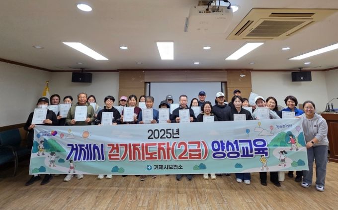 [경남도민뉴스=김부경 기자] 거제시보건소는 지난 11월 7일부터 8일까지 이틀간 ‘걷기지도자(2급) 양성교육’을 성공적으로 마무리했다. 이번 교육은 시민들의 건강한 걷기 문화를 확산하고 지역사회 건강 리더를 양성하기 위해 추진됐다.
