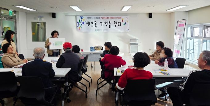 [경남도민뉴스=김태수 기자] 고성군이 운영하는 고성군종합사회복지관에서는 11월 14일 치매예방 미술심리 프로그램 『색으로 기억을 잇다』의 1회차 ‘나의 추억 정원’ 활동을 진행했다.