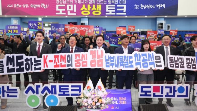[경남도민뉴스=구인애 기자] 경상남도는 18일 거제 반다비체육센터에서 열린 ‘도민 상생토크’에서 기업혁신파크, 광역교통망, 미래산업 등을 연계한 성장전략을 제시하며 지원 의지를 밝혔다.