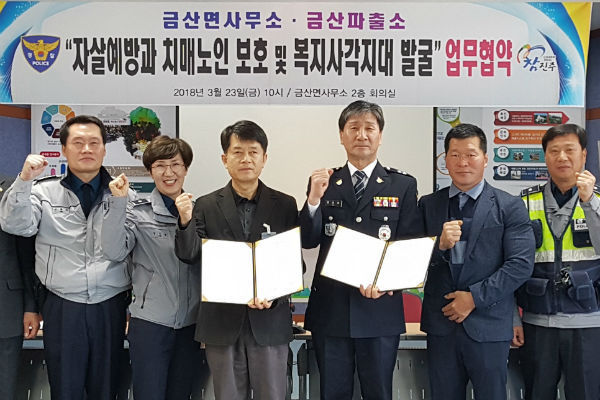 정현대 금산면장은 “이번 협약을 통해 복지사각지대에 있는 지역주민 발굴과 협력 방안을 체계적으로 구축하고 금산면민들에게 더 나은 복지서비스와 치안행정을 제공할 수 있을 것으로 기대한다”고 말했다.