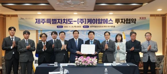 [경남도민뉴스=하형수 기자] 제주도는 20일 제주도청 백록홀에서 ‘상장기업 육성펀드 1호’ 투자기업인 ㈜케이알에스(KRS)와 본사 이전 및 투자협약을 체결했다.