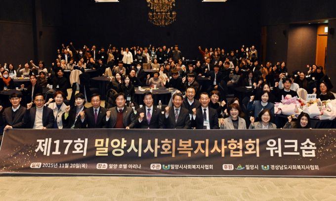 [경남도민뉴스=나희준 기자] 경남 밀양시는 호텔아리나 경산홀에서 지역 내 민·관 사회복지사 130여 명이 참석한 가운데 ‘제17회 밀양시사회복지사협의회 워크숍’을 개최했다고 21일 밝혔다.