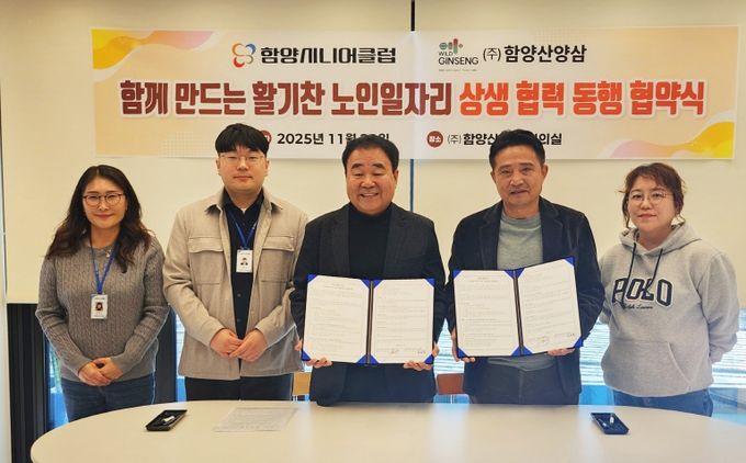 [경남도민뉴스=장광동 기자] 함양시니어클럽(관장 김용환)은 21일 글로벌 수출 선도기업인 농업회사법인 ㈜함양산양삼(대표 이종상)과 노인일자리사업 및 지역사회 상생발전을 위한 업무협약(MOU)을 체결했다고 밝혔다.