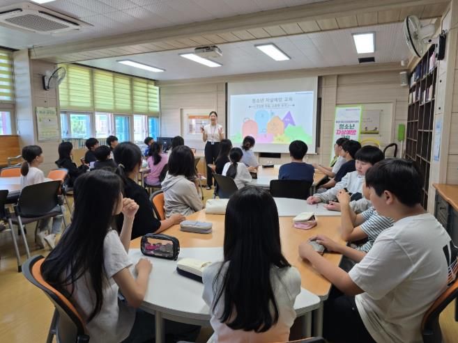 이날 교육은 청소년 자살 문제의 심각성과 예방 필요성을 공감하고, 합리적인 생각을 통해 건강하게 나를 지키는 방법 알기, 자살을 생각하는 친구를 알아차리고 도와주기 등 청소년들이 자신의 감정을 이해하고 건강하게 표현할 수 있는 활동으로 진행됐다.