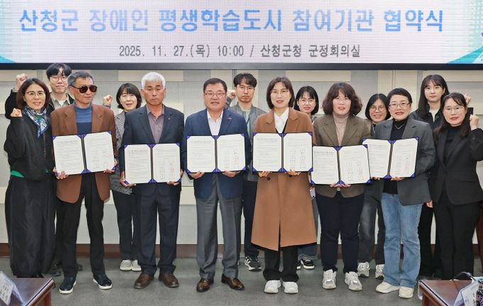 [경남도민뉴스=김태수 기자] 산청군은 27일 군청 군정회의실에서 산엔청복지관 등 장애인 단체와 ‘장애인 평생학습도시 운영을 위한 업무협약’을 체결했다고 밝혔다.