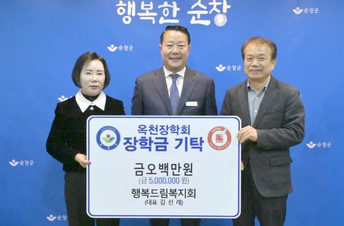 [경남도민뉴스=최인태 기자] 순창군이 1일 (사)행복드림복지회에서 순창군옥천장학회에 장학금 500만원을 기탁했다고 밝혔다.