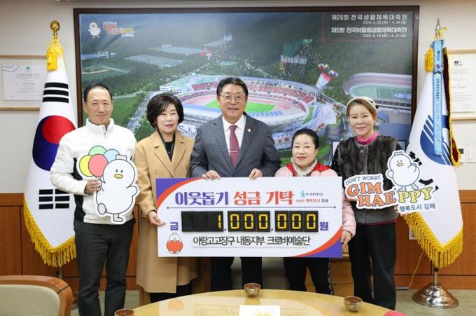 [경남도민뉴스=최미정 기자] 김해시는 2일 아랑고고장구 내동지부 크로바예술단에서 이웃돕기 성금 100만원을 기탁했다고 밝혔다.