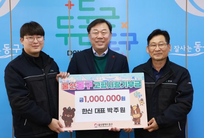 [경남도민뉴스=최재경 기자] 울산 동구는 12월 2일(화) 오전 10시 한신 박주원 대표가 김종훈 동구청장을 만나 고향사랑기부금 100만 원을 기탁했다.