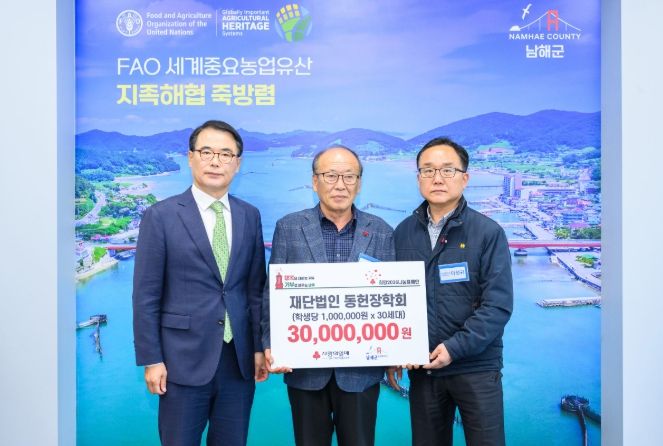[경남도민뉴스=김부경 기자] 남해군은 지난 2일 재단법인 동헌장학회(회장 강진용)가 저소득층 학생들을 위한 장학금 3천만원을 기탁했다고 밝혔다.