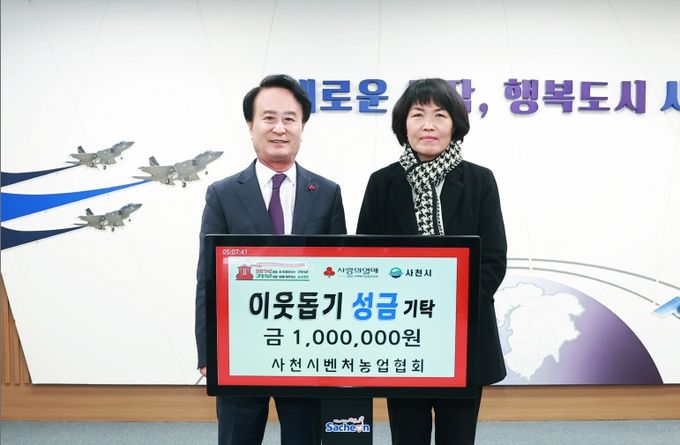 [경남도민뉴스=변정형 기자] 사천시벤처농업협회(회장 이현순)는 4일 사천시청을 방문해 사천시 관내 취약계층을 위해 써달라며 이웃돕기 성금 100만원을 기탁했다.