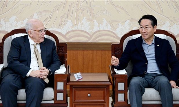 [경남도민뉴스=김용욱 기자] 유정복 인천시장은 12월 3일 오후 인천시청 접견실에서 세계 최고 수준의 의과·바이오 연구 중심 대학인 존스홉킨스대의 조나단 슈넥(Jonathan schneck) 의과대학 교수(왼쪽) 일행을 접견했다.